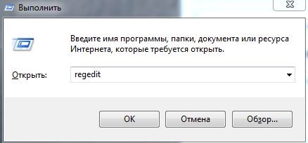 Запустите программу "Выполнить", для этого нажмите сочетание клавиш "Windows + R" или нажмите "Пуск - Все программы - Стандартные - Выполнить", а затем введите regedit и нажмите кнопку” OK", чтобы открыть редактор реестра.