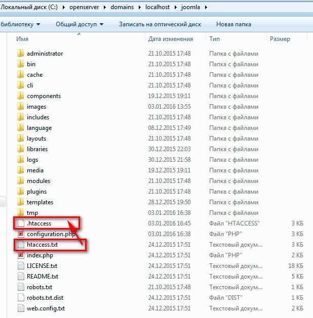 На первый взгляд – все отлично, но в этом случае, строка 4-about-your-home-page – это как бы название папки, к которой мы обращаемся. А значит, что бы, не было ошибок, обязательно необходимо переименовать файл, под названием htaccess.txt, который располагается в корневом каталоге исходников Joomla, в файл .htaccess.