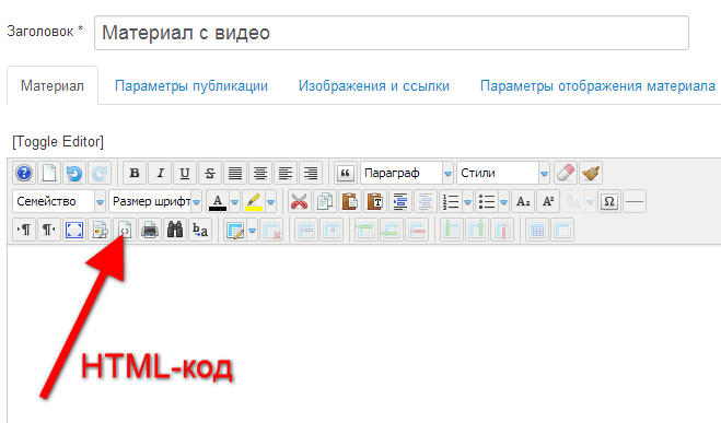 2.Переходим вHTML часть редактора.