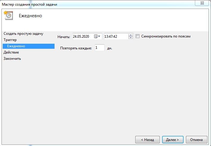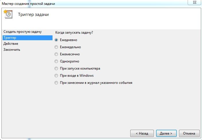 - Выберете периодичность запуска